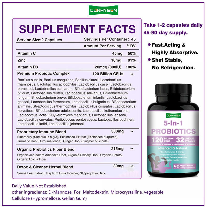 निजी लेबल 5-इन-1 प्रीबायोटिक कैप्सूल डिटॉक्स और चयापचय को बढ़ावा देता है प्रोबायोटिक सप्लीमेंट