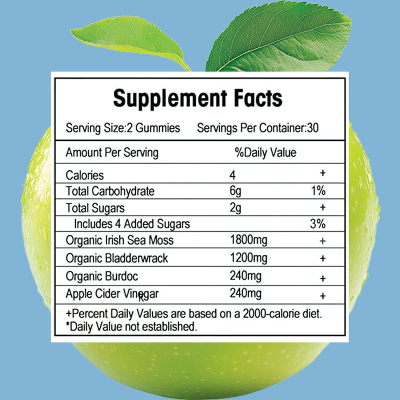 ऑर्गेनिक आयरिश सी मॉस, ऑर्गेनिक ब्लैडरवैक, ऑर्गेनिक बर्डॉक रूट, एप्पल साइडर विनेगर
