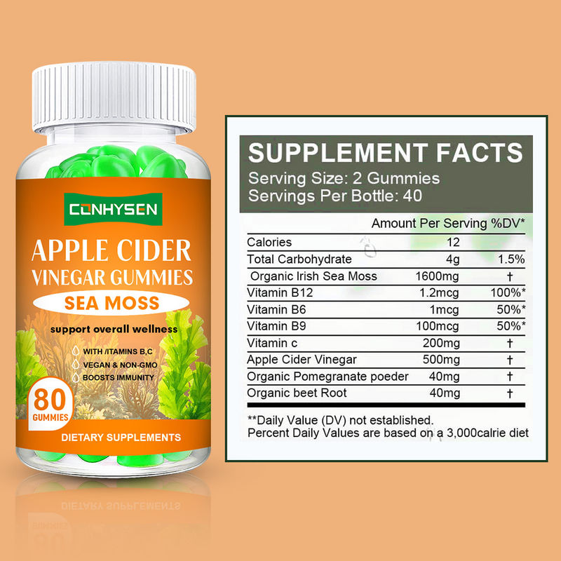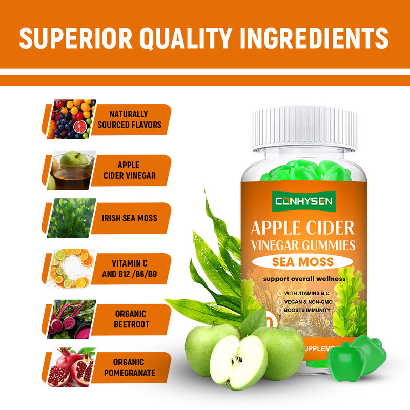 एप्पल साइडर विनेगर सी मॉस गमियाँ एंटीऑक्सीडेंट गुण को बढ़ावा देती हैं कस्टम ब्रांडेड