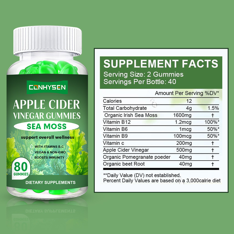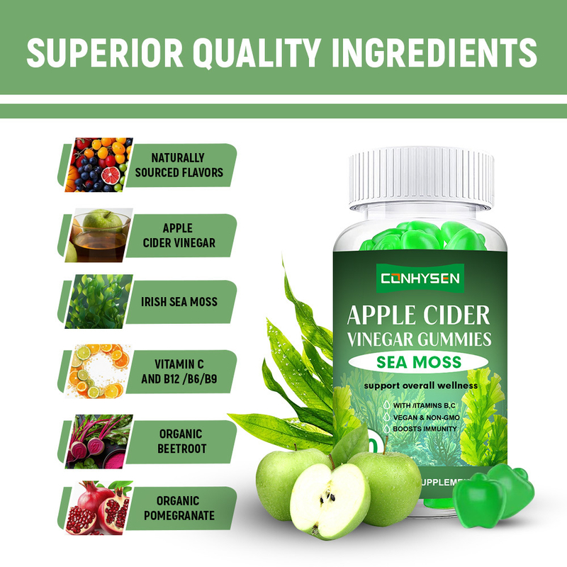 जैविक आयरिश सी मॉस, सेब साइडर सिरका, विटामिन सी, विटामिन बी6, विटामिन बी9, विटामिन बी12, जैविक अनार पाउडर, जैविक बीट रूट