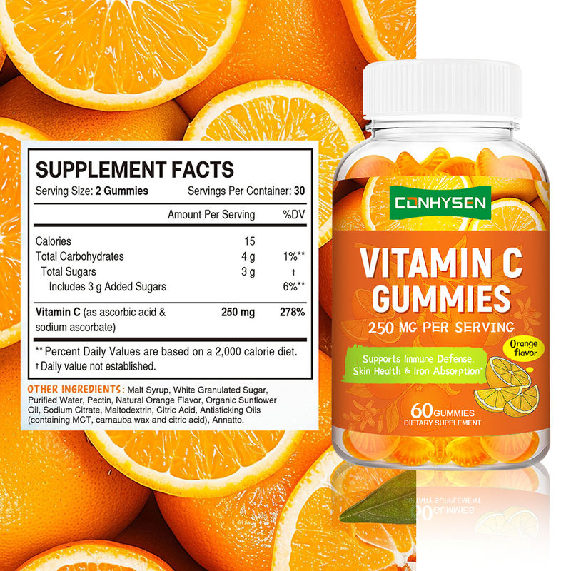 कस्टम 250 मिलीग्राम विटामिन सी गमीज स्वस्थ त्वचा बनाए रखें फैक्टरी प्रत्यक्ष