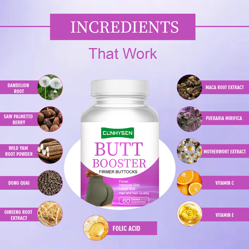 द्वारा विकसित बट बूस्टर टैबलेटगुआंगडोंग कांगशेंग फार्मास्युटिकल टेक्नोलॉजी कं, लिमिटेडविभिन्न विटामिन और एंटीऑक्सीडेंट घटकों से भरपूर हैं। वे अंदर से बाहर तक त्वचा की स्थिति में सुधार कर सकते हैं। उत्पाद में सक्रिय पदार्थ त्वचा कोशिकाओं के नवीनीकरण को तेज कर सकते हैं, चयापचय को बढ़ावा दे सकते हैं, विषाक्त पदार्थों को खत्म करने में मदद कर सकते हैं, और त्वचा को चिकना और अधिक नाजुक बना सकते हैं। विशेष रूप से उन समस्याओं को लक्षित करना जैसे नारंगी के छिलके का ऊतक और खुरदरापन जो अक्सर नितंबों की त्वचा पर होता है, हमारा उत्पाद इन स्थितियों में प्रभावी ढंग से सुधार कर सकता है।