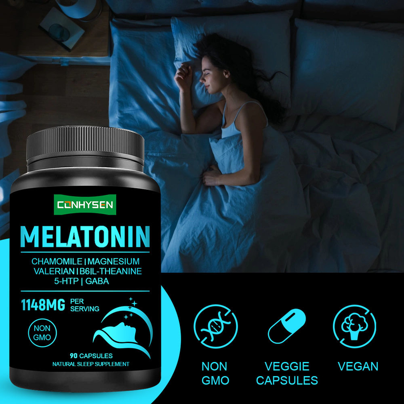 कस्टम मेलाटोनिन कैप्सूल 1148mg फ़ैक्टरी डायरेक्ट बूस्ट स्लीप क्वालिटी बेडटाइम