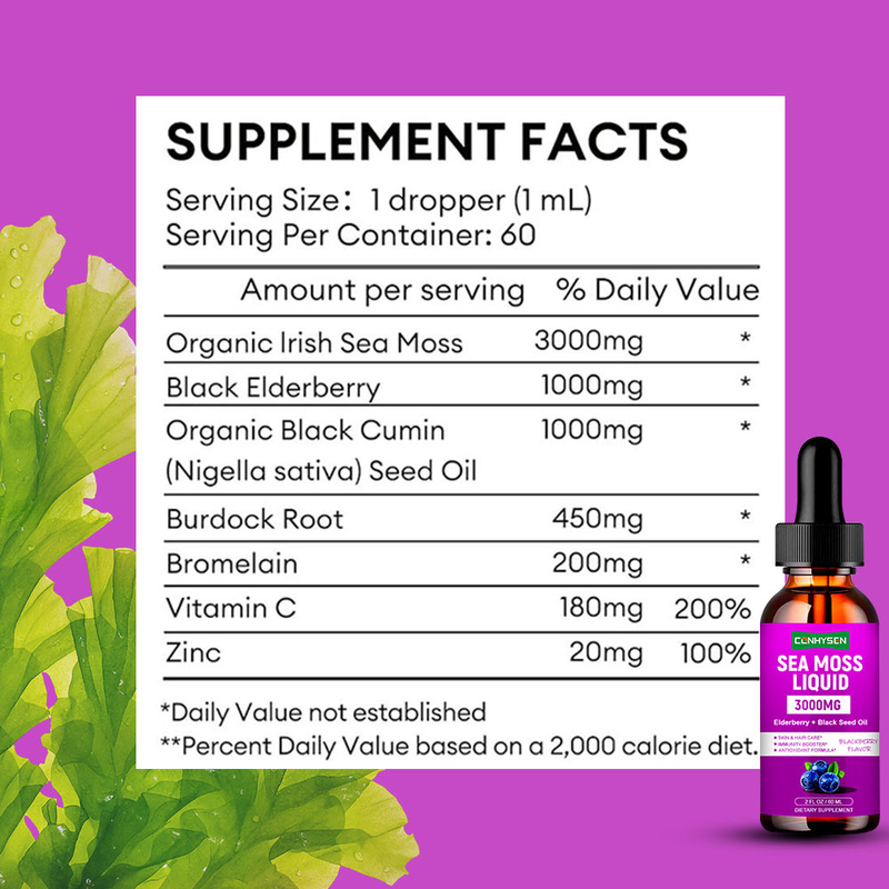 जैविक आयरिश सी मॉस, विटामिन सी, ब्लैक एल्डरबेरी, बर्डक रूट, जैविक ब्लैक कमिन, ब्रोमेलिन, जिंक