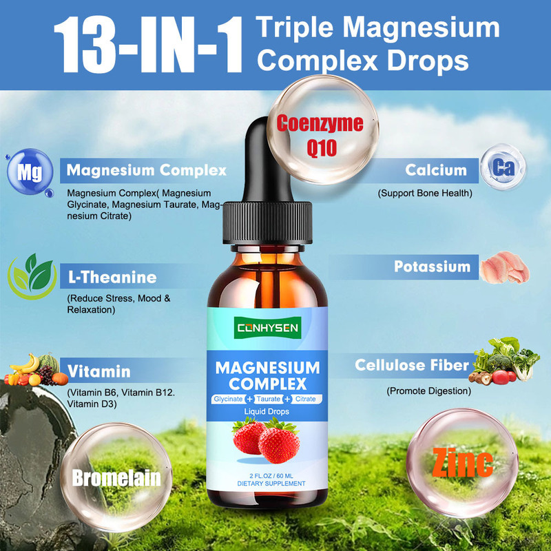 ट्रिपल मैग्नीशियम कॉम्प्लेक्स तरल बूंदें ग्लाइसीनेट नींद मांसपेशी तंत्रिका समर्थन थोक कस्टम
